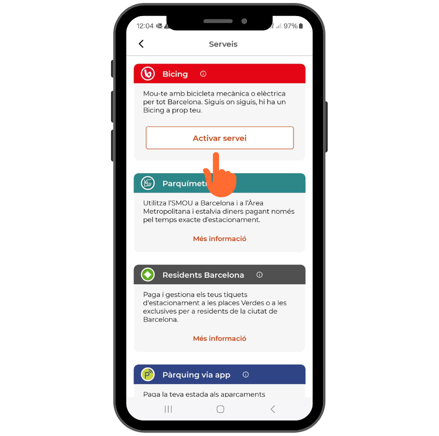- Donar-te d’alta al servei 'Bicing' des de l'app.