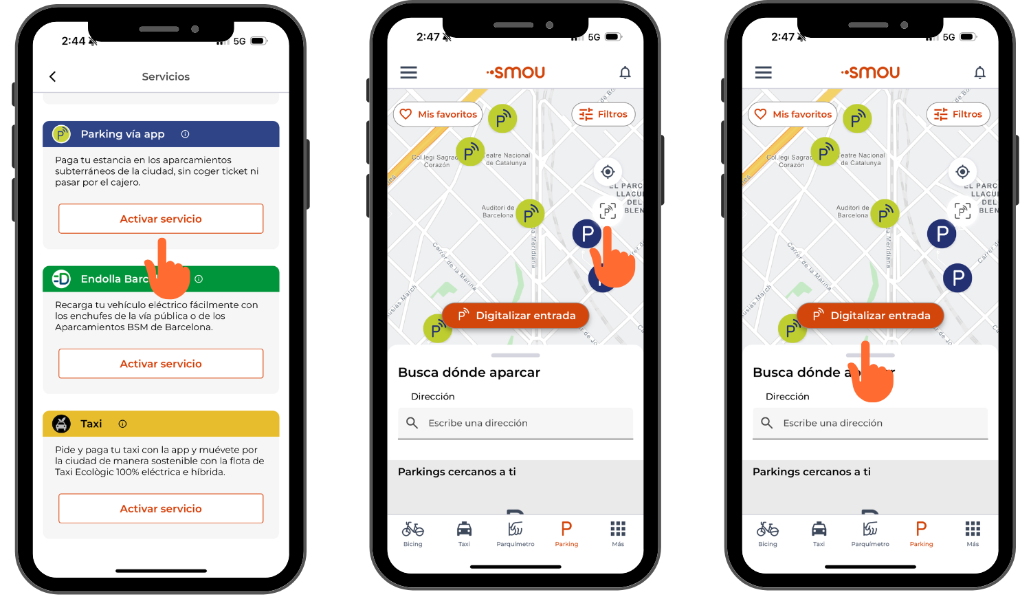 El servicio 'Parking vía app' te permite pagar el aparcamiento con el móvil. Aparca con SMOU y paga tus estancias por minutos sin coger ticket. Además, accederás al aparcamiento mediante la Entrada Express por lectura de matrícula.