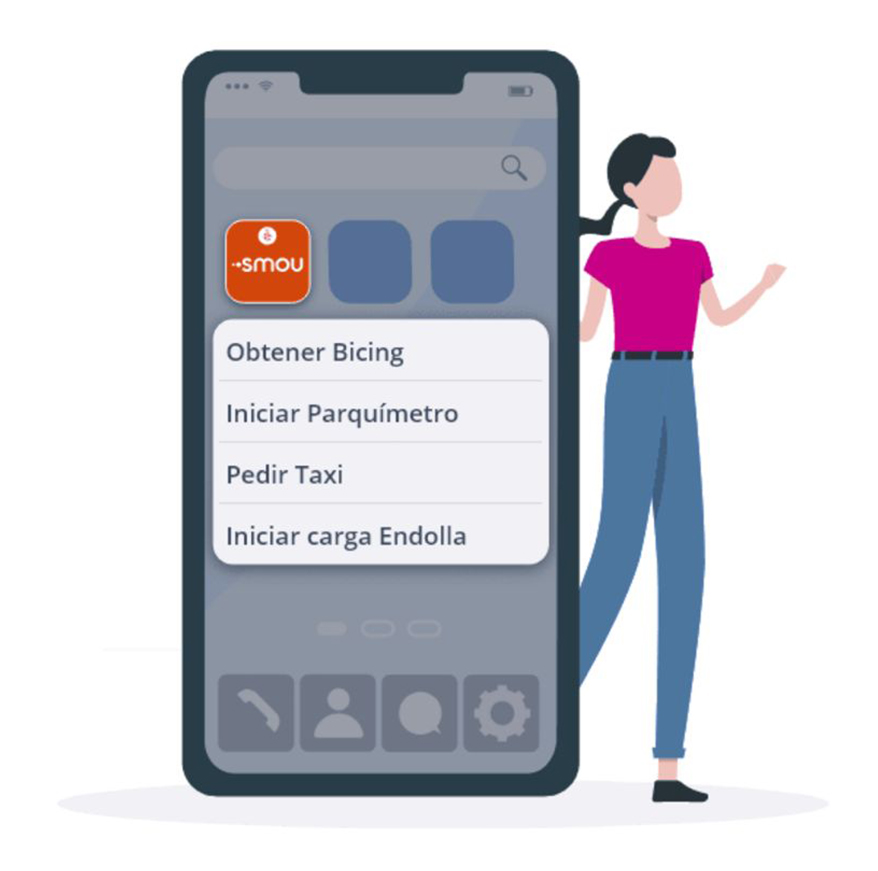 Hemos incluido un menú de acciones directas con el que podrás utilizar algunos de los servicios de SMOU sin abrir la app. Solo tienes que mantener presionado durante unos segundos el icono de SMOU en tu móvil y, si tienes activados los siguientes servicios, tendrás acceso directo a: